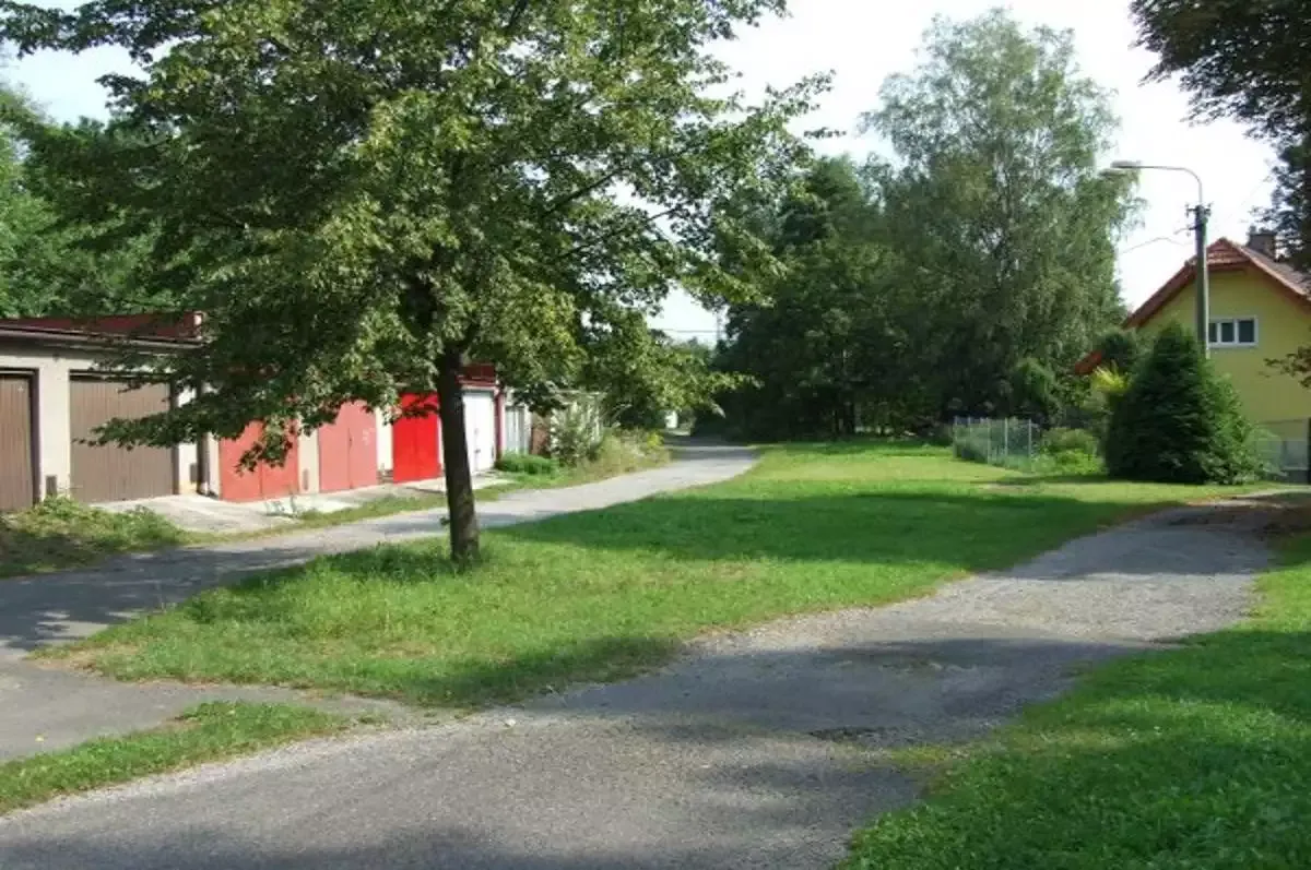 mohla byt i fotka z druhe strany garazi, jsou tam dodnes videt zaklady mlyna na ktretych jsou garaze postaveny