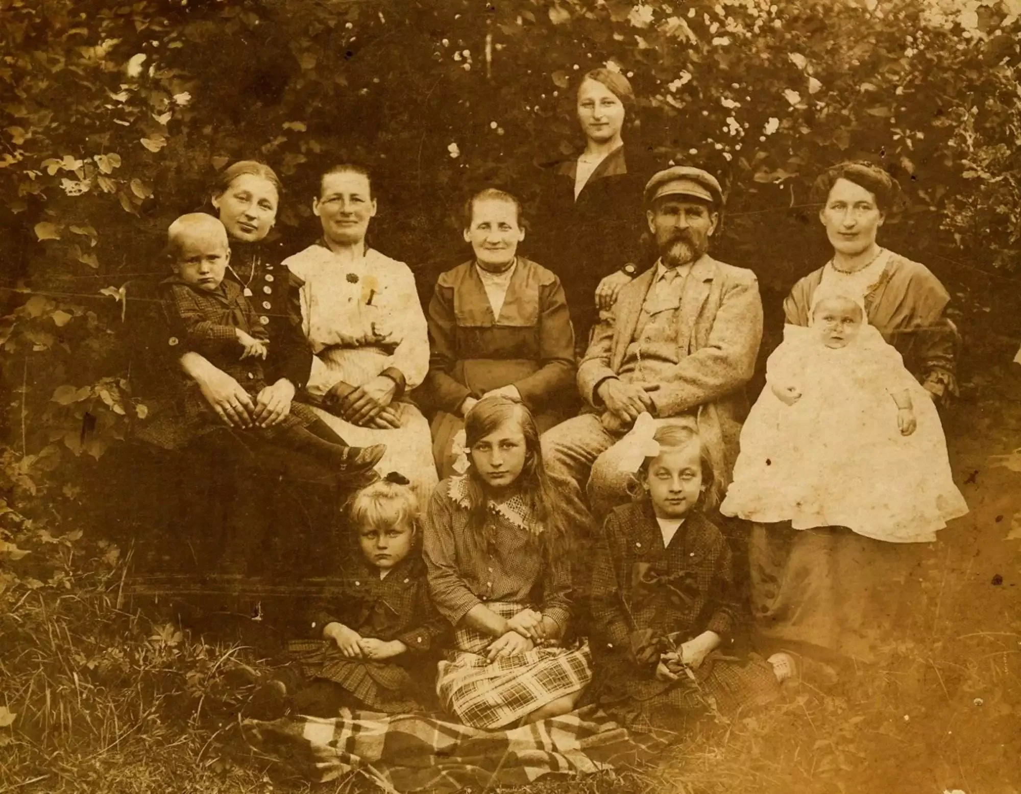 Jan Vogt s manželkou a dcerami a vnoučaty.