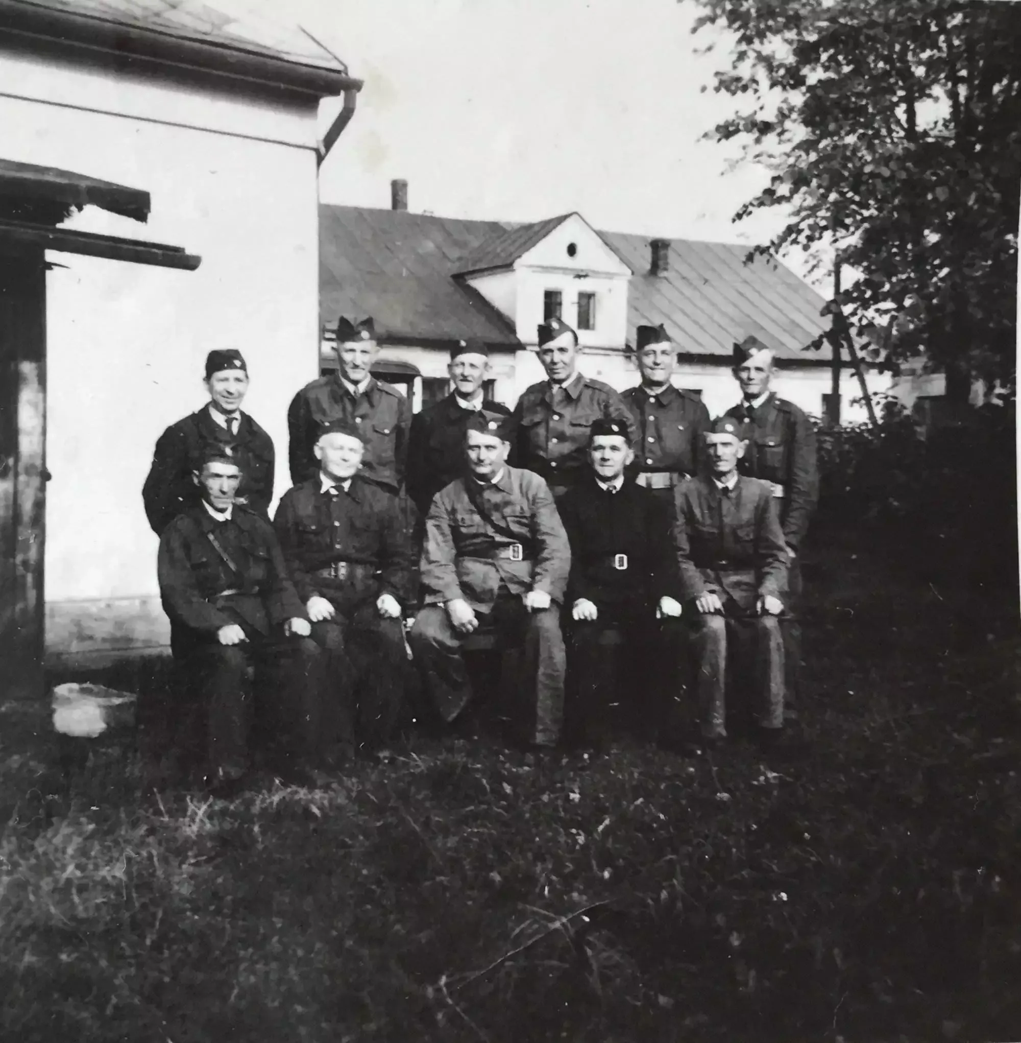 Historické foto hasičů s popisem pochází ze sbírky paní Starkové.
