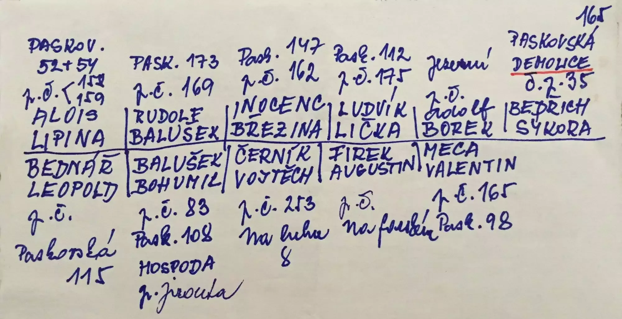 Zleva nahoře: Alois Lipina, Rudolf Balušek, Inocenc Březina, Ludvík Lička, Adolf Borek, Bedřich Sýkora