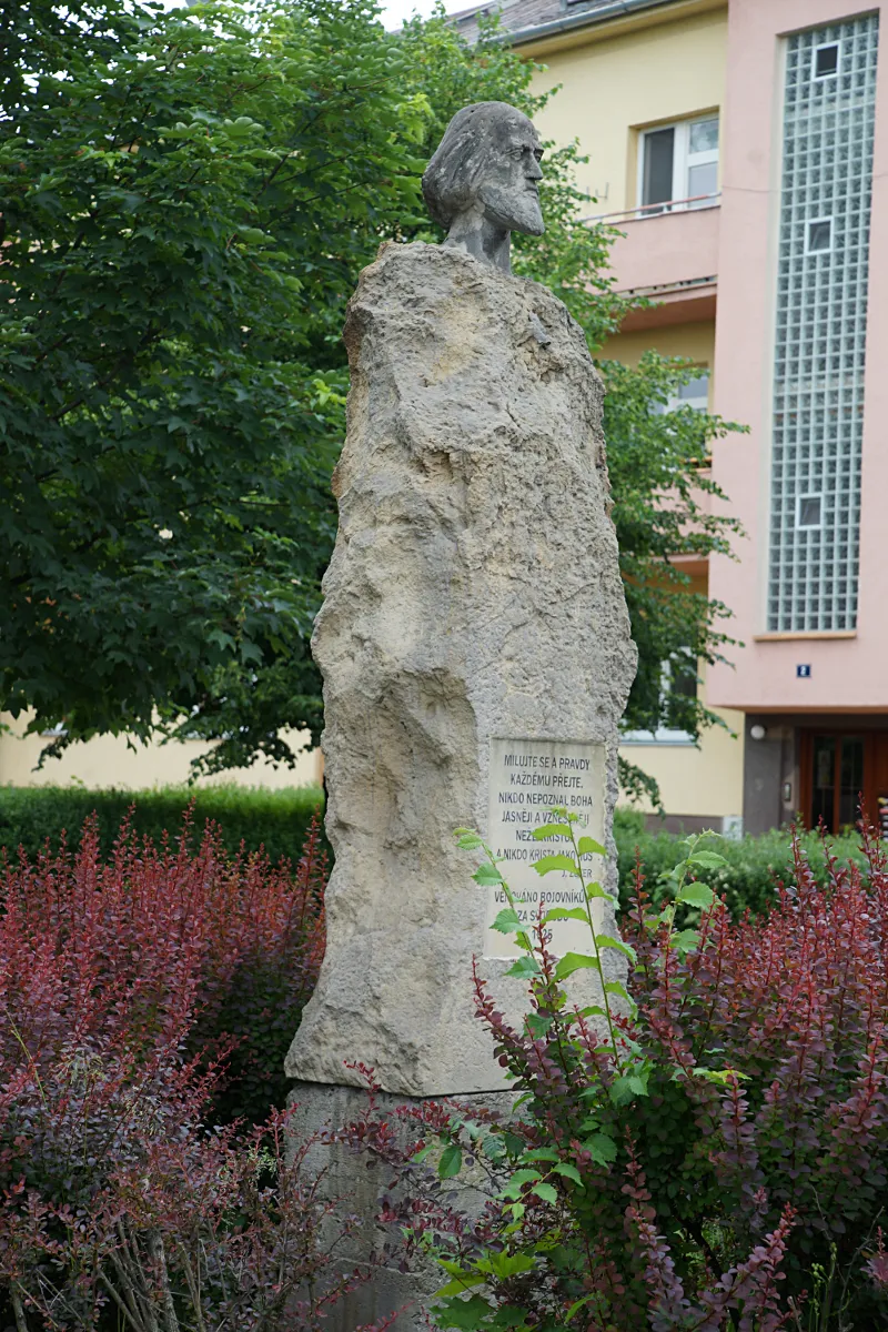 U vjezdu do ulice Jestřábského, ulice vedoucí ke kostelíku, se nachází socha mistra Jana Husa. Od započetí prací na tomto díle uplynulo 8.6.2015 dlouhých 90 let a 5.7.2015 uplyne stejně dlouhá doba od jejího odhalení.