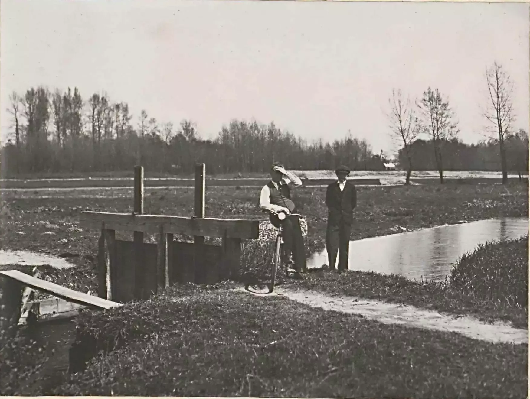 Hranice selských pozemků, tj. široké meze pro jízdu vozem, táhnou se směrem od východu k západu, takže každému rolníkovi patří část břehu, rybník, slín, a po východní straně část luhu, vrbiny, kamence a po případě i část „Za vodou“.