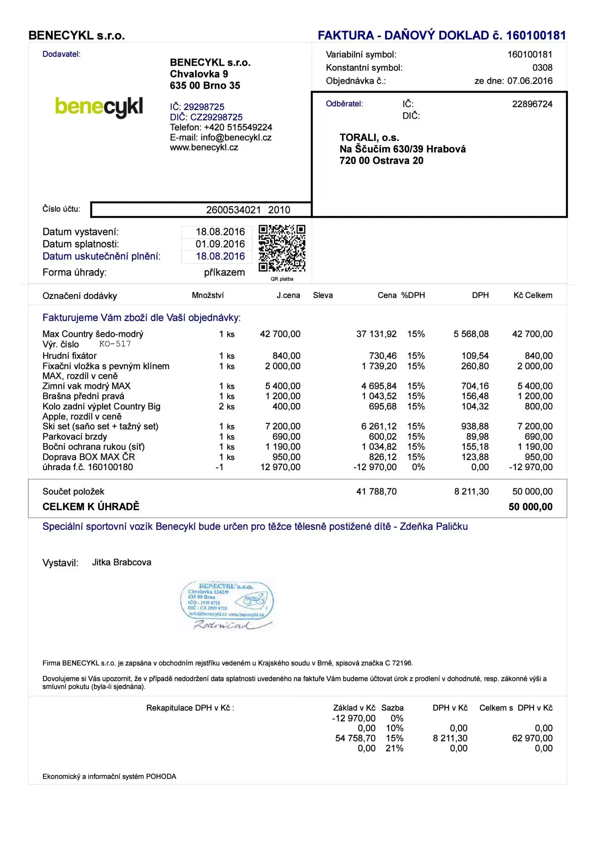 Konečně se díky penězům od Nadačního fondu AVAST podařila zaplatit podstatná část faktury za sportovní vozík pro tělesně postiženého Zdeňka Paličku.