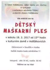 Opět po roce jsme se spolkem TORALI vydali do Hošťálkovic, kam jsme byli pozvaní tamním Sokolem, abychom jim pomohli s dětským maškarním plesem.