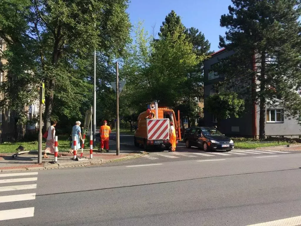 Před školou již od rána probíhají práce na semaforu. Podle úřadu se jedná o modernizaci semaforů, protože ty současné byly zastaralé. Ty nové si prý budou moci autobusy ovládat;-)