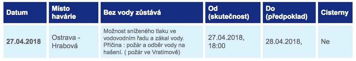 Táňa Harisová ve facebookové skupině Hrabové ostatní občany informovala o tom, že OVAK upozorňuje na zákal vody. OVAK: Možnost sníženého tlaku ve vodovodním řadu a zákal vody. Příčina: požár a odběr vody na hašení. (požár ve Vratimově).