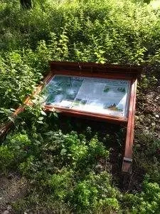 Podnět: Víkendové řádění na Domovské u točny! Poničený panel naučné stezky.