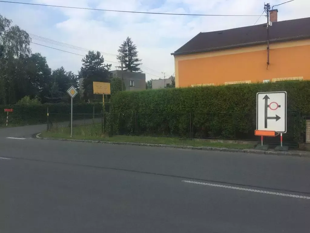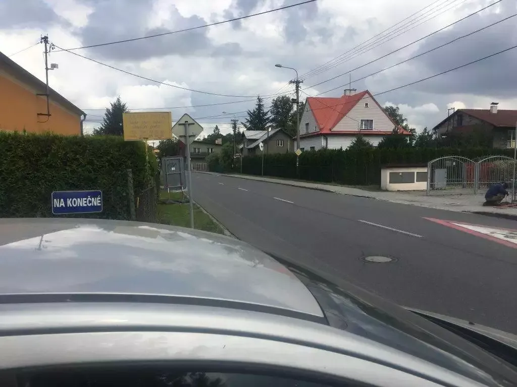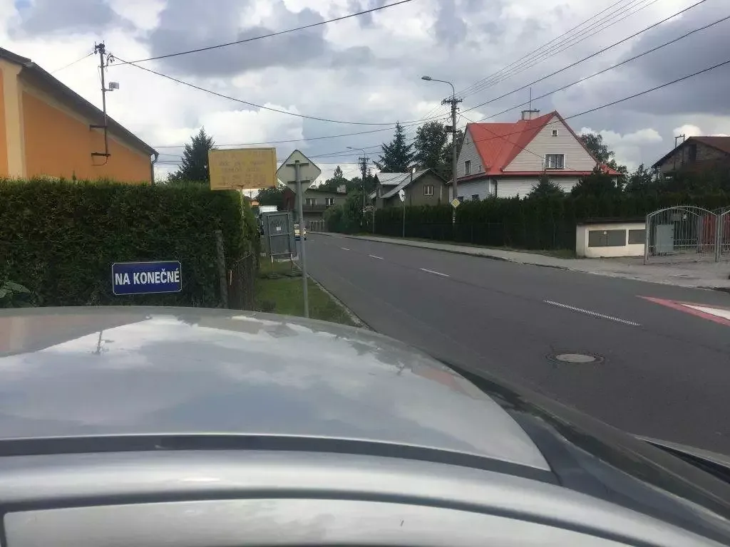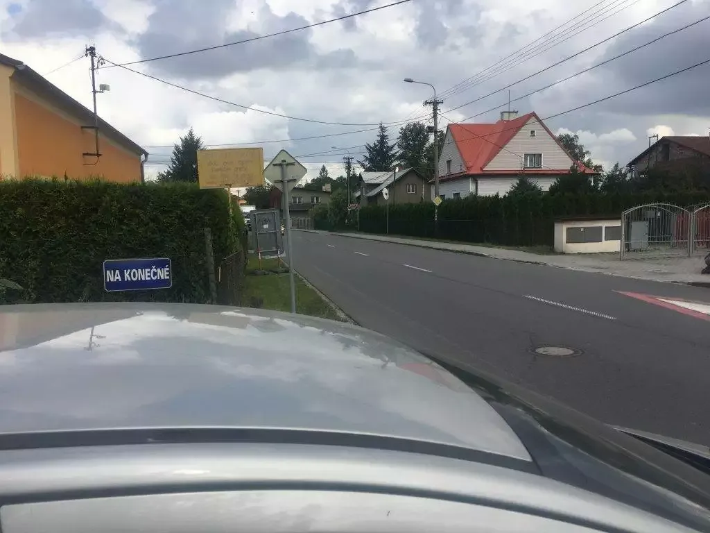 Rozhled při výjezdu z ulice Na Konečné na ulici Paskovskou je díky mobilní dopravní značce velice nepřehledný. Značka již několik týdnů upozorňuje na zákaz vjezdu na ulici Klasnou a vyznačuje směr možné objížďky.