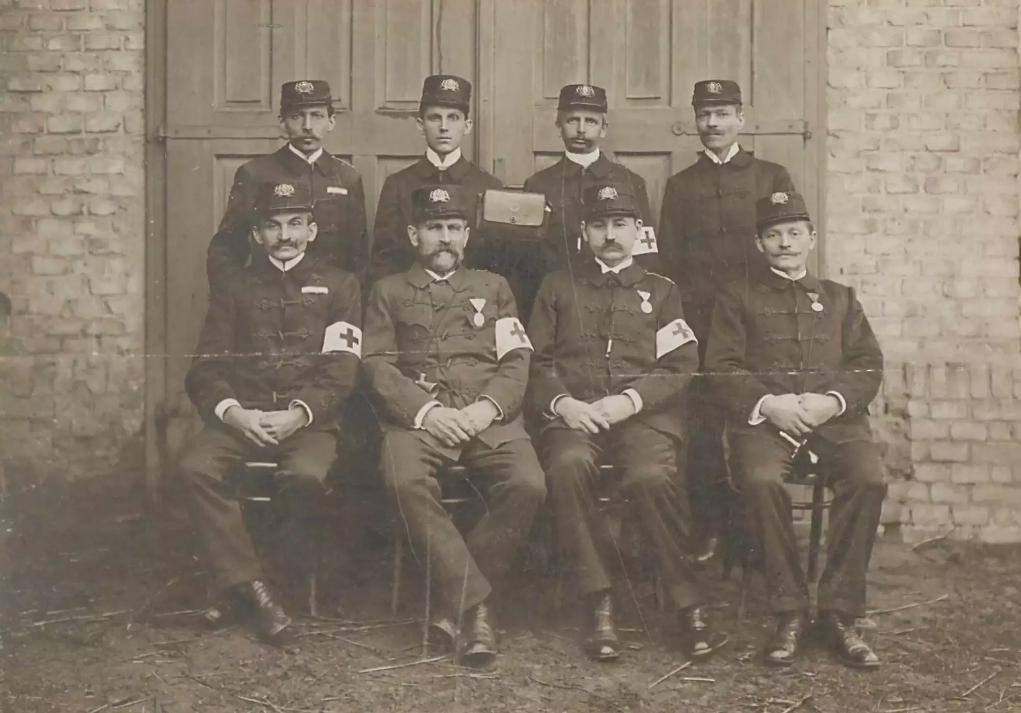 Obrázek č. 3: Členové dobrovolného hasičského sboru, pod jejichž správou byl v Hrabové zřízen vojenský lazaret [293].