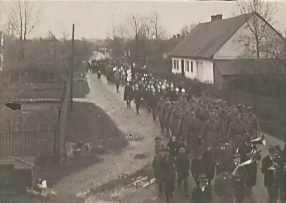 Obrázek č. 5: Slavnost zasazení „Lípy svobody“ naproti hostince „U Lípy“ v květnu 1919. Slavnosti byli přítomni také vojáci z vojenské posádky horského dělostřeleckého pluku č. 256 [295].