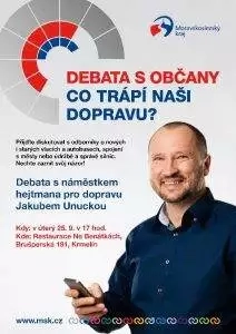 Přijďte diskutovat s odborníky o nových i starých vlacích a autobusech, spojení s městy nebo údržbě a správě silnic. Nechte zaznít svůj názor! Debata s náměstkem hejtmana pro dopravu Jakubem Unuckou.