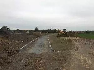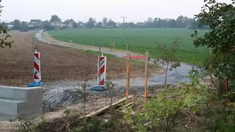 (22.10. 2018) Podél prodloužené Mostní se začíná rýsovat stezka pro chodce a cyklisty (od kruhového objezdu na Paskovské po ulici K Nadjezdu).