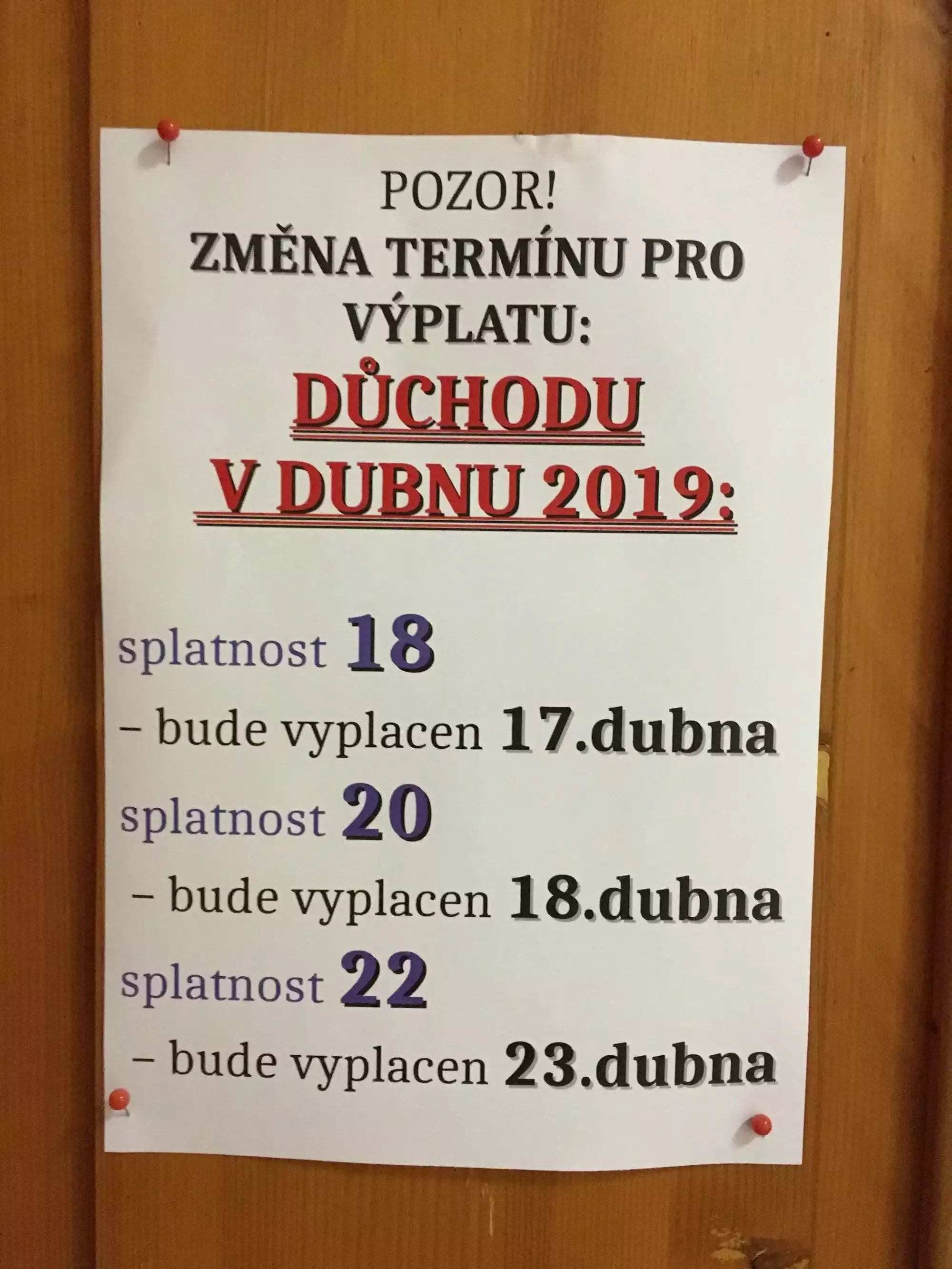 - Splatnost 20 – důchod bude vyplacen 18. dubna