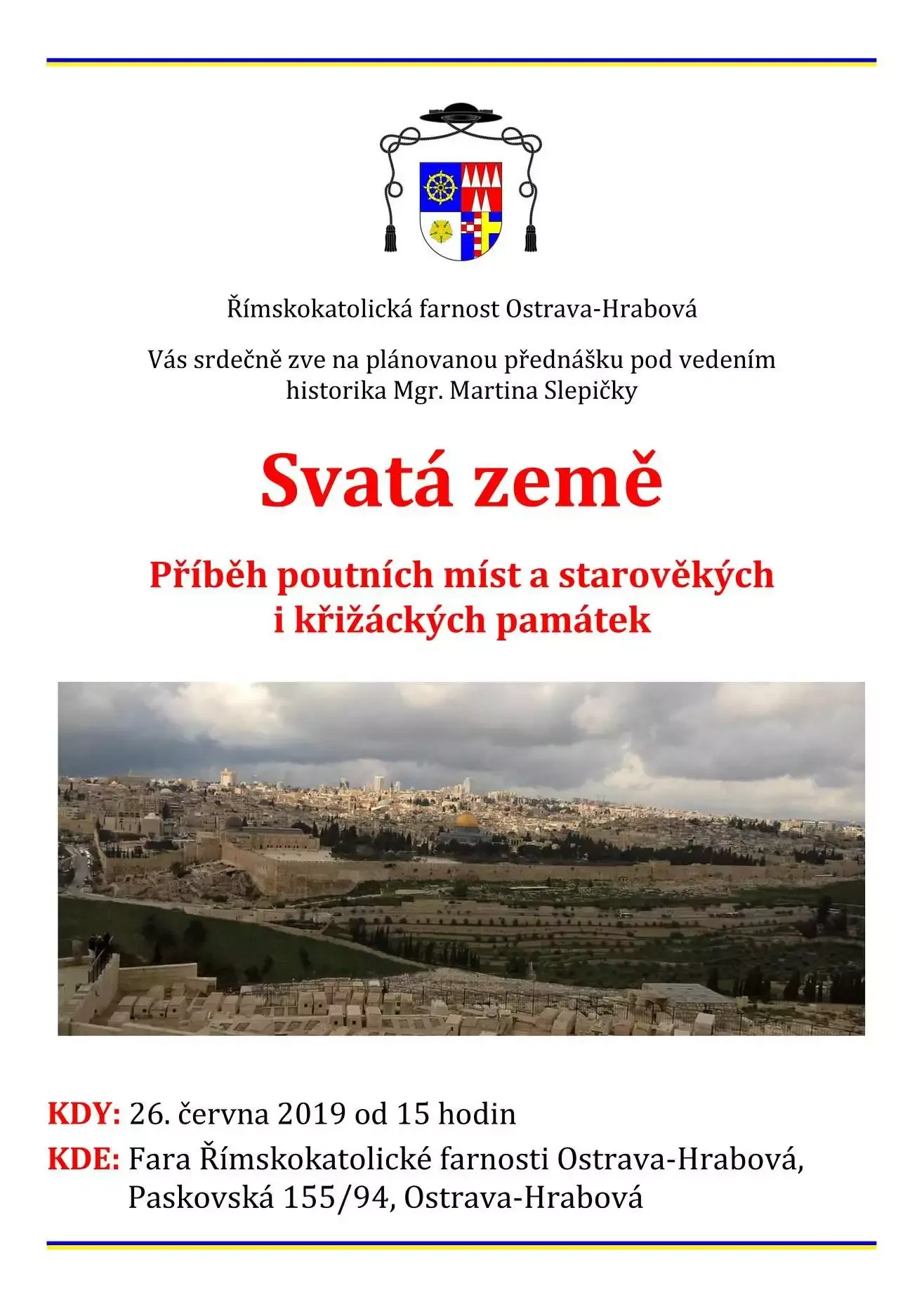 Římskokatolická farnost Ostrava-Hrabová Vás srdečně zve na přednášku Martina Slepičky – Svatá země. Jedná se o příběh poutních míst a starověkých i křižáckých památek.