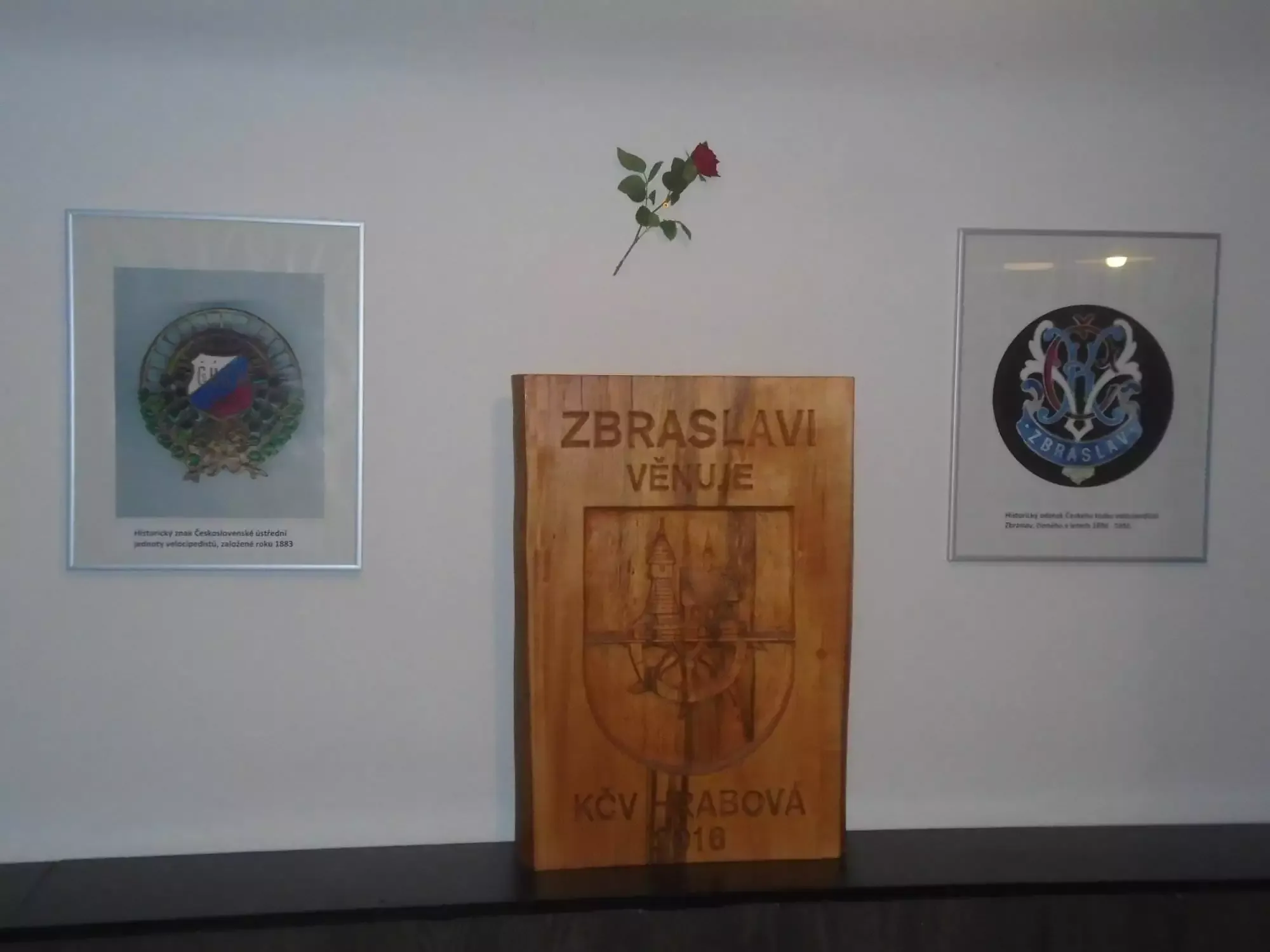 Klub českých velocipedistů Hrabová si byl dobře vědom (zasloužené!) pocty, které se jim právě v r. 2016 dostalo. Tehdy se KČV taky rozhodl Zbraslavi poděkovat vhodným dárkem, který by jim celostátní setkání a konkrétně Hrabovou trvale připomínal. Rozhodl se pro řezbu, která jim byla 12. 11. 2016 v Trojhalí slavnostně předána.