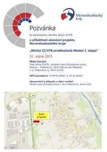 dovoluji si Vám zaslat pozvánku ke slavnostnímu otevření „Silnice II/478 prodloužená Mostní I. etapa“ v Ostravě. Akce se uskuteční 22. srpna 2019. Bližší informace naleznete v přiložené pozvánce.