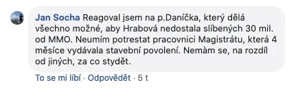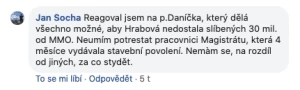 Hrabová tehdy nedostala dotaci z IROP, přestože bychom ji při splnění podmínek dostali. Při výměně názorů na facebooku jsem položil tajemníkovi našeho úřadu následující dotaz: