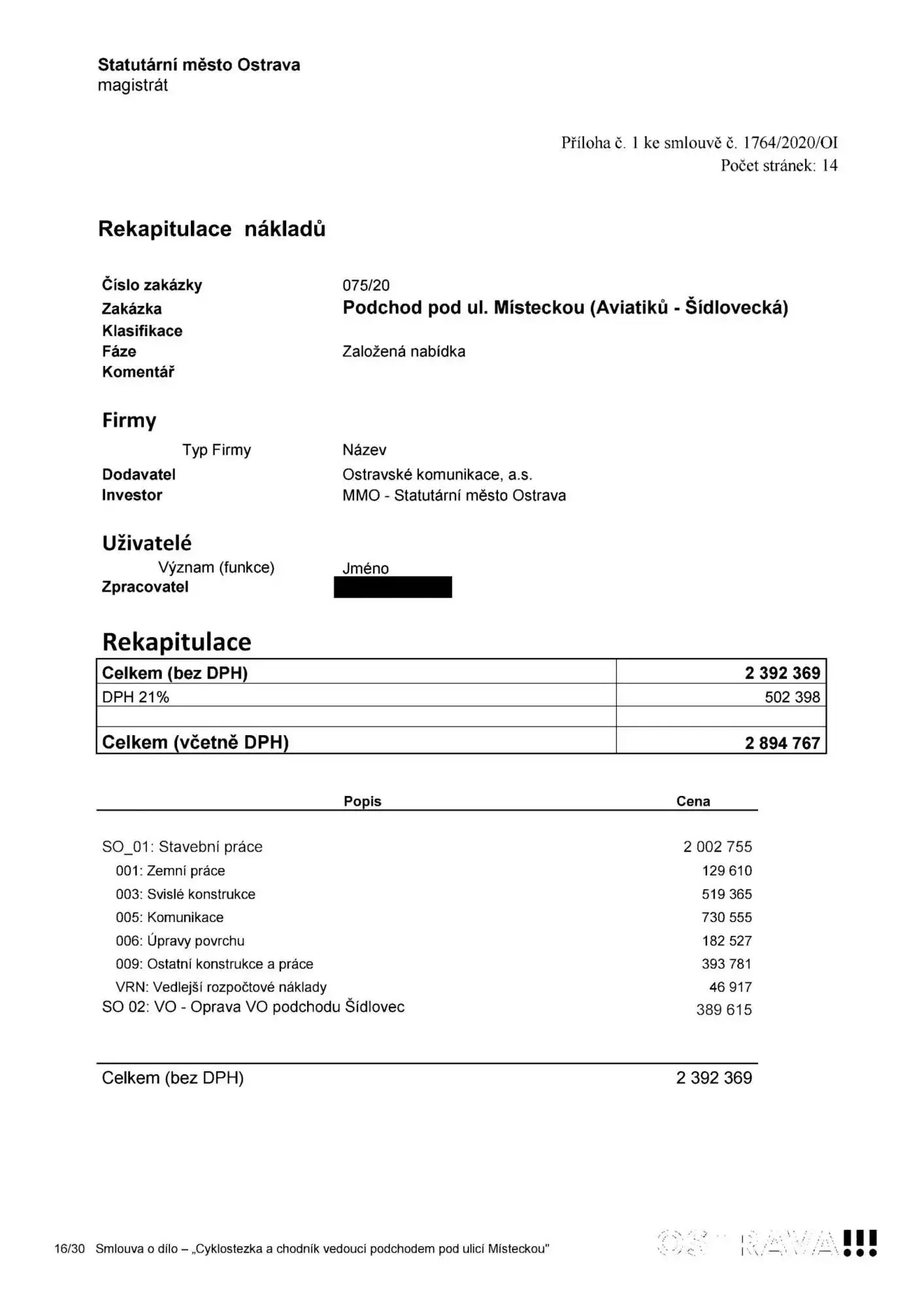 V pondělí 20. července podepsal předseda představenstva (Ostravské komunikace a.s.) Ing. Daniel Lyčka smlouvu o dílo „Cyklostezka a chodník vedoucí podchodem pod ulicí Místeckou“.
