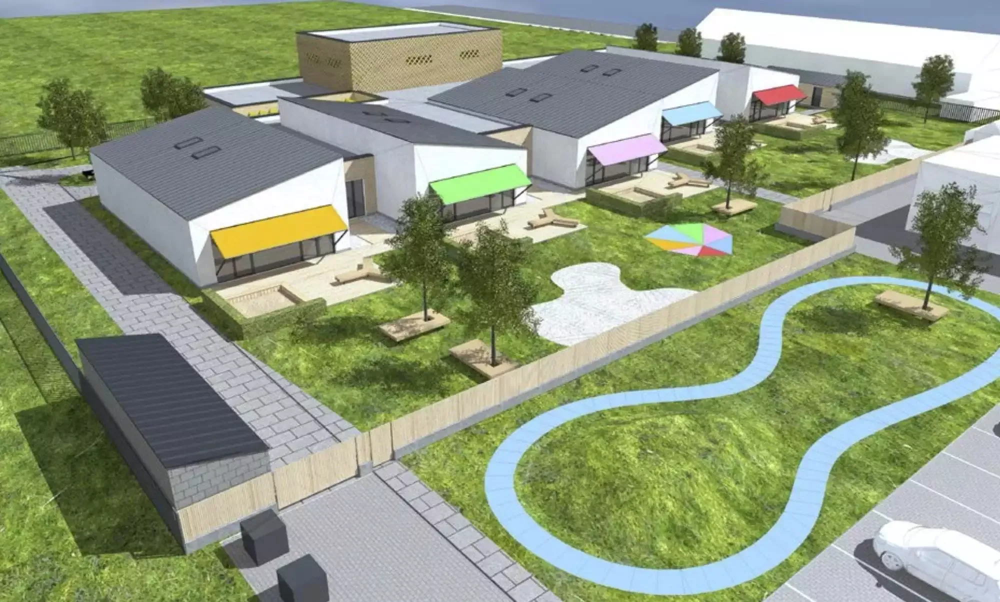 Nicméně, já si myslím, že to jsou lavičky v této vizualizaci, ale nejde to moc vidět: https://www.hrabova.info/wp-content/uploads/2020/01/skolka.jpg