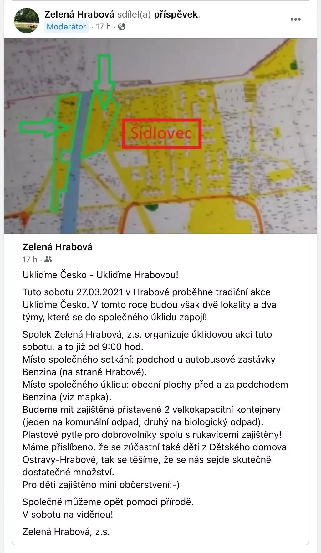 (Aktualizováno 24.3. 2021 13:30 hod.) I letos se v Hrabové zapojíme do tradičního celorepublikového úklidu Ukliďme Česko. Již tuto sobotu 27.3. 2021 budeme od 9:00 hod., respektive od 15. hod. uklízet na dvou místech v Hrabové. Pro individuální úklid dalších míst v Hrabové jsme zřídili tzv. pytlomaty.