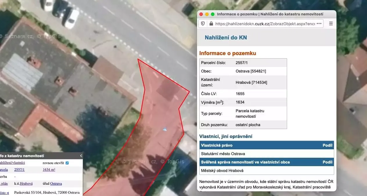 Věřte nebo ne, ale intenzivně se tomuto problému někdo věnuje. Není to sice Petr Balušek (radní za stavby) a ani starosta Igor Trávníček, ale věnují se tomu Janky ze Zelené Hrabové a radní Jiřina Kelnarová. Jelikož jim stále někdo házel klacky pod nohy (protože to přeci není jejich věc a starosta se majiteli nemůže měsíce dovolat) a věc se neubírala dle mého názoru správným směrem, podíval jsem se minulý týden do katastru nemovitosti a hle… cesta, obrubníky a část chodníku jde za našim úřadem, nikoliv za majitelem budovy.