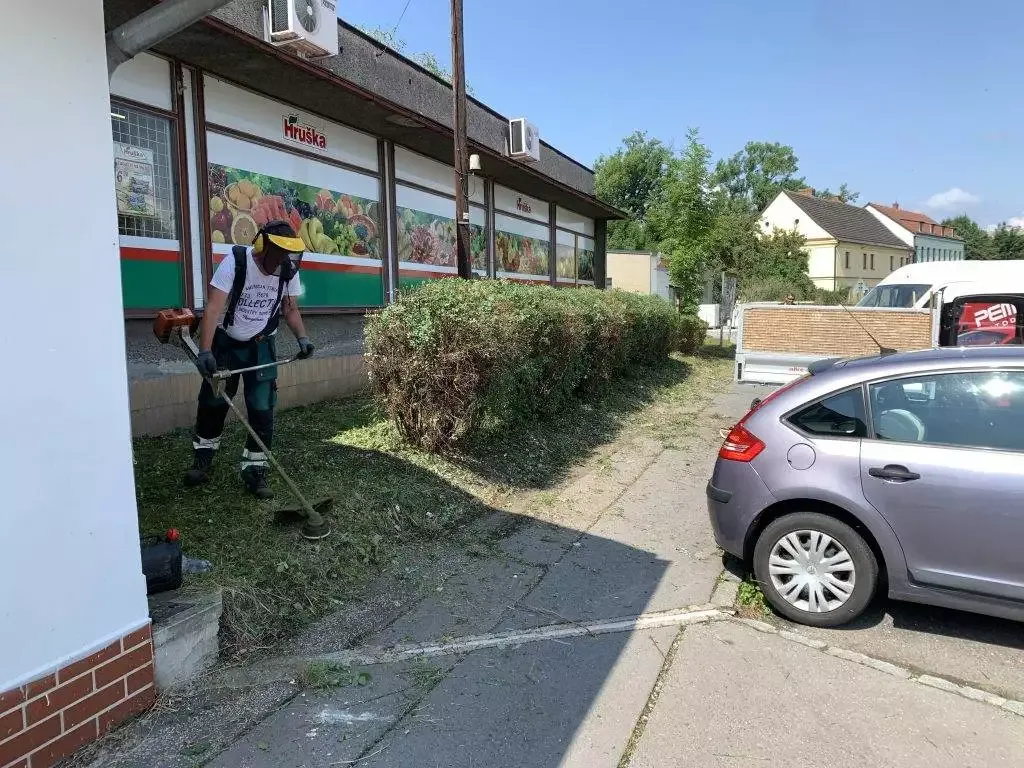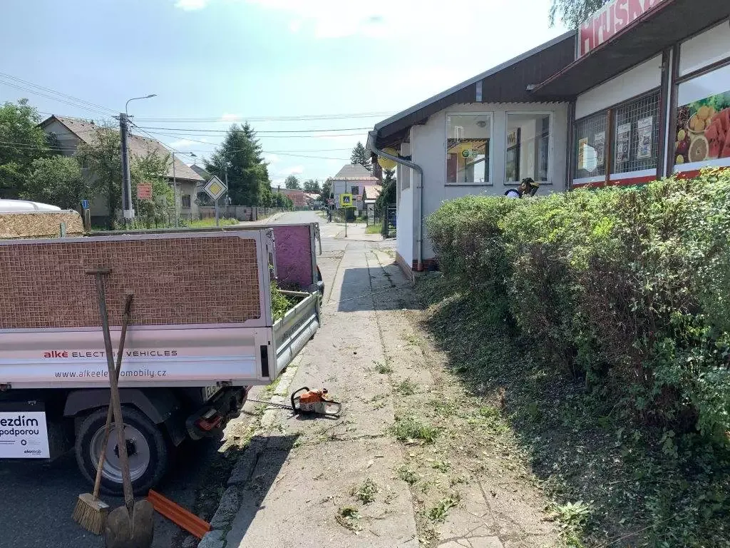 Pracovníci technických služeb tento týden dělali pořádek se zelení před prodejnou Hruška. Děkujeme!