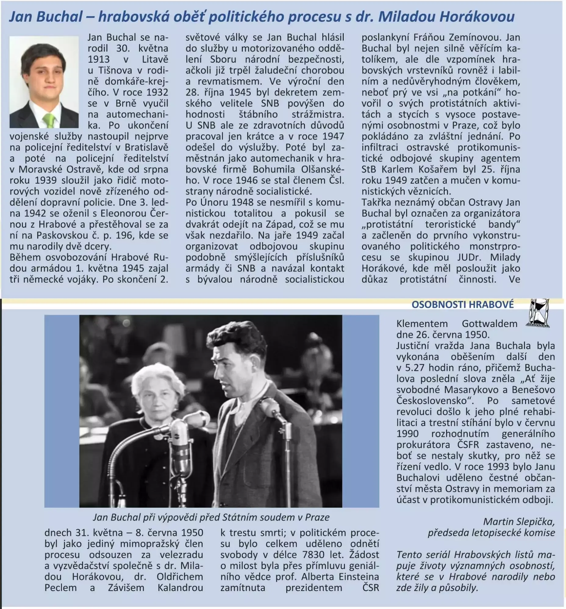 - Hrabovské listy: Jan Buchal – hrabovská oběť politického procesu s dr. Miladou Horákovou