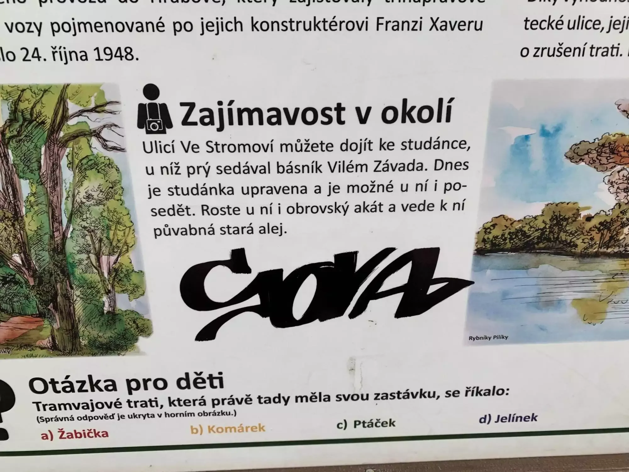 Komentář občana/občanky: Prosíme pracovníky technických služeb, jestli by se pokusili odstranit nápis na tabuli stezky V. Závady.