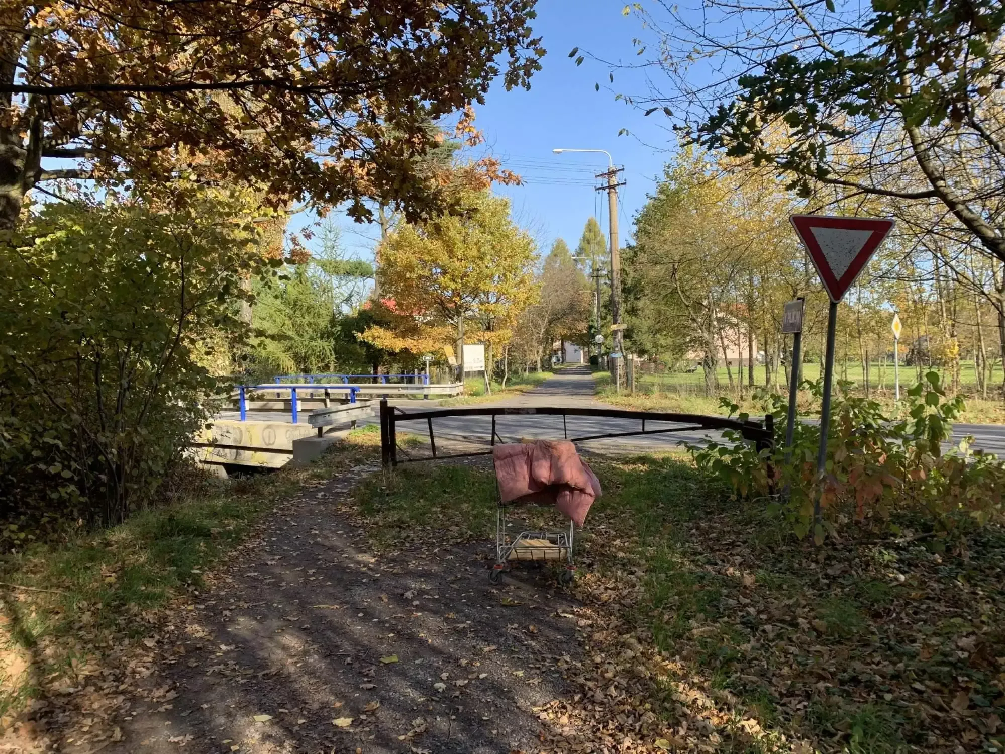 Komentář občana/občanky: Někdo si odložil nákupní vozík s pěřinou na cestu K Pilíkům za závorou.