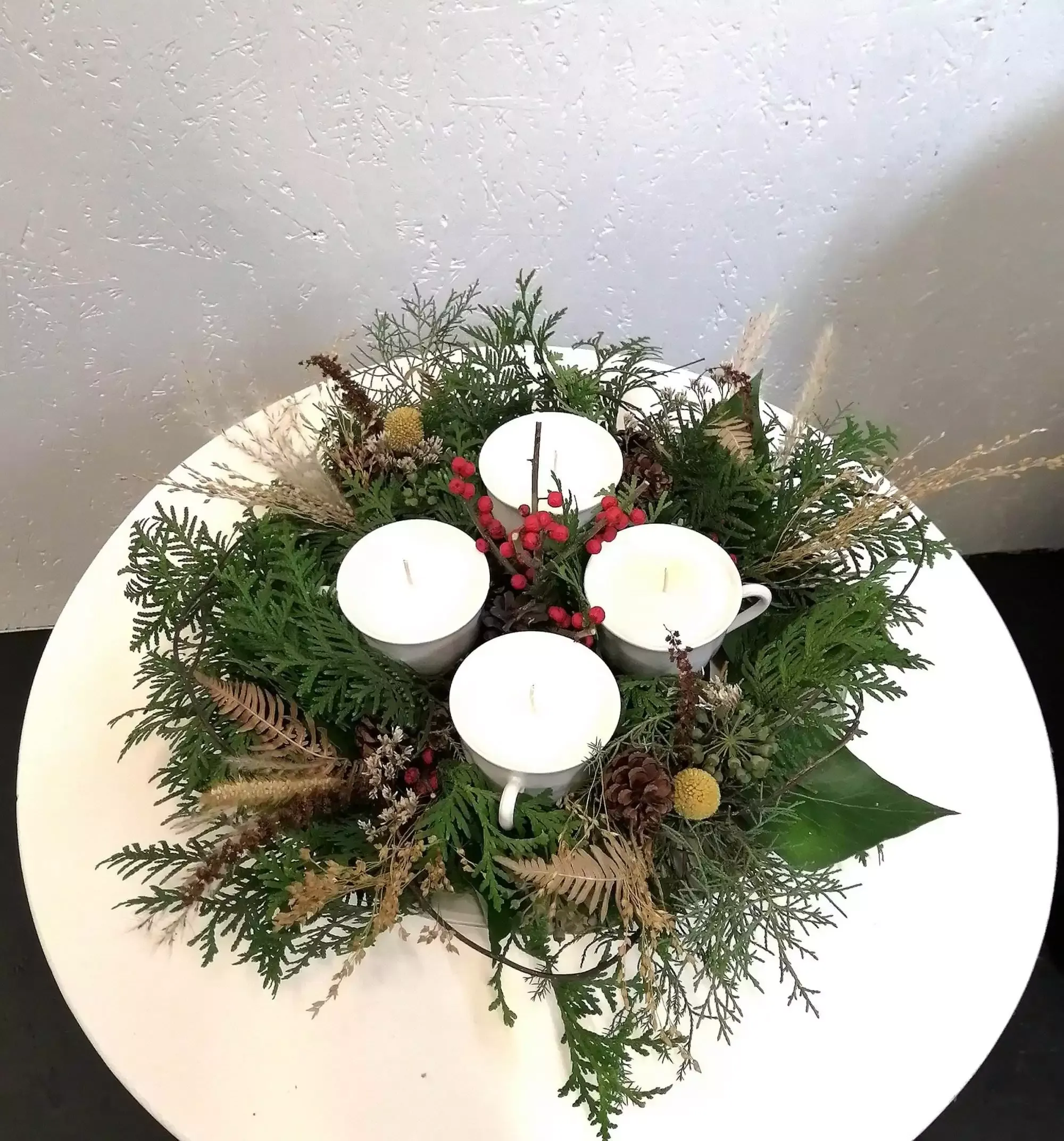 Adventní věnec vytvořený z nádobí z Reuse centra Ostrava