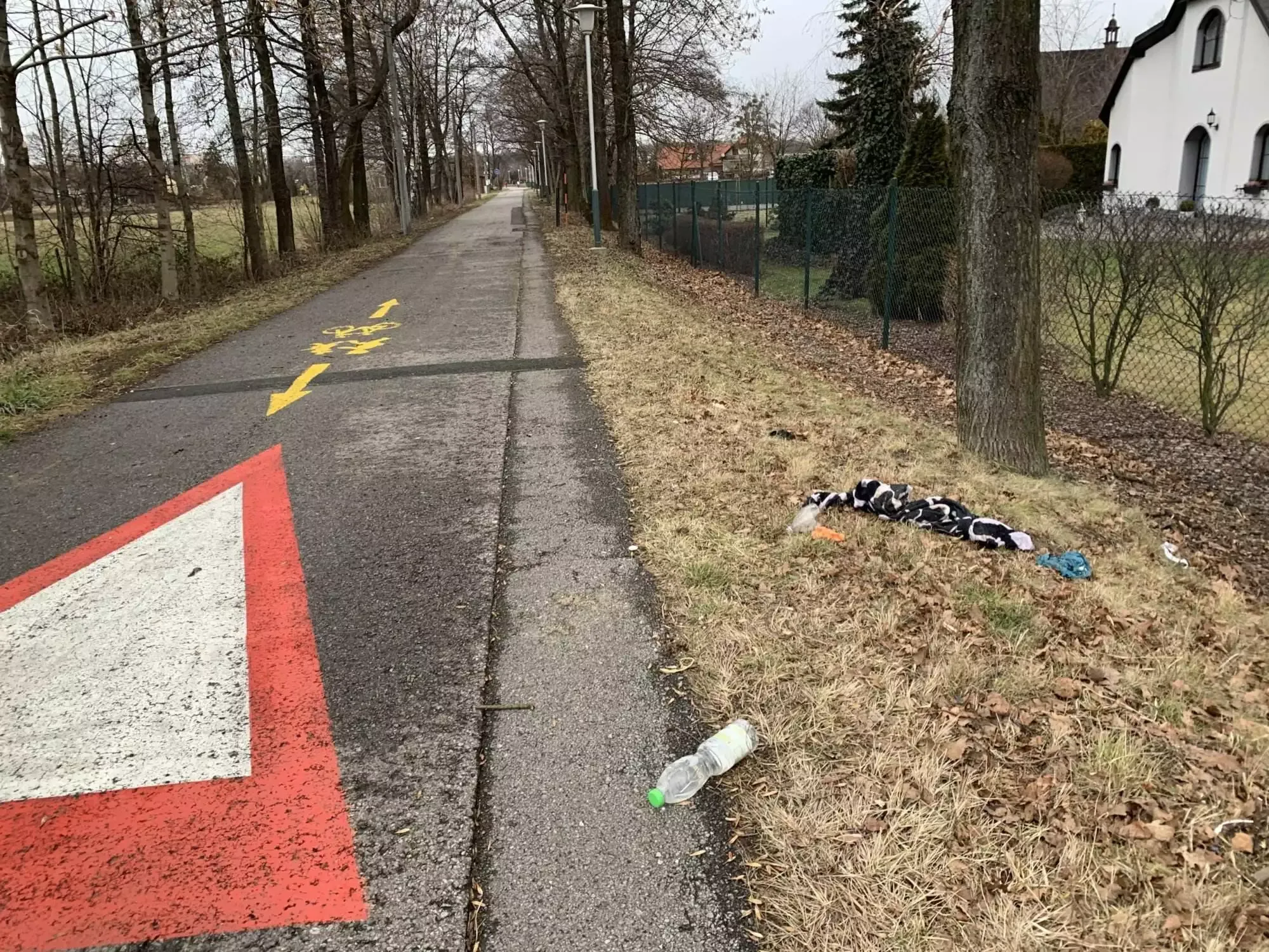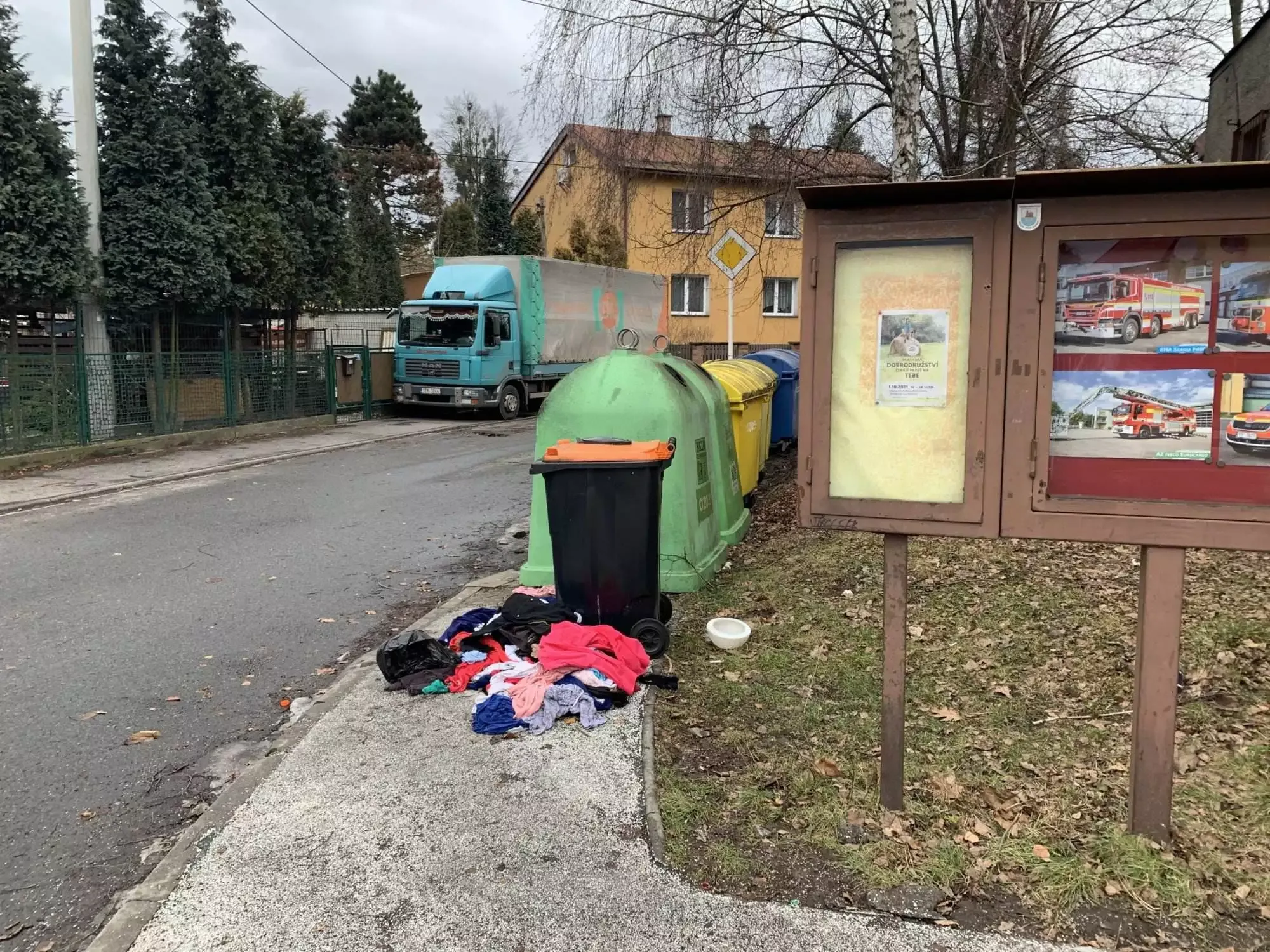 Komentář: Někdo si odhodil halenku, asi mu bylo v zimě vedro. Plus odpadky.