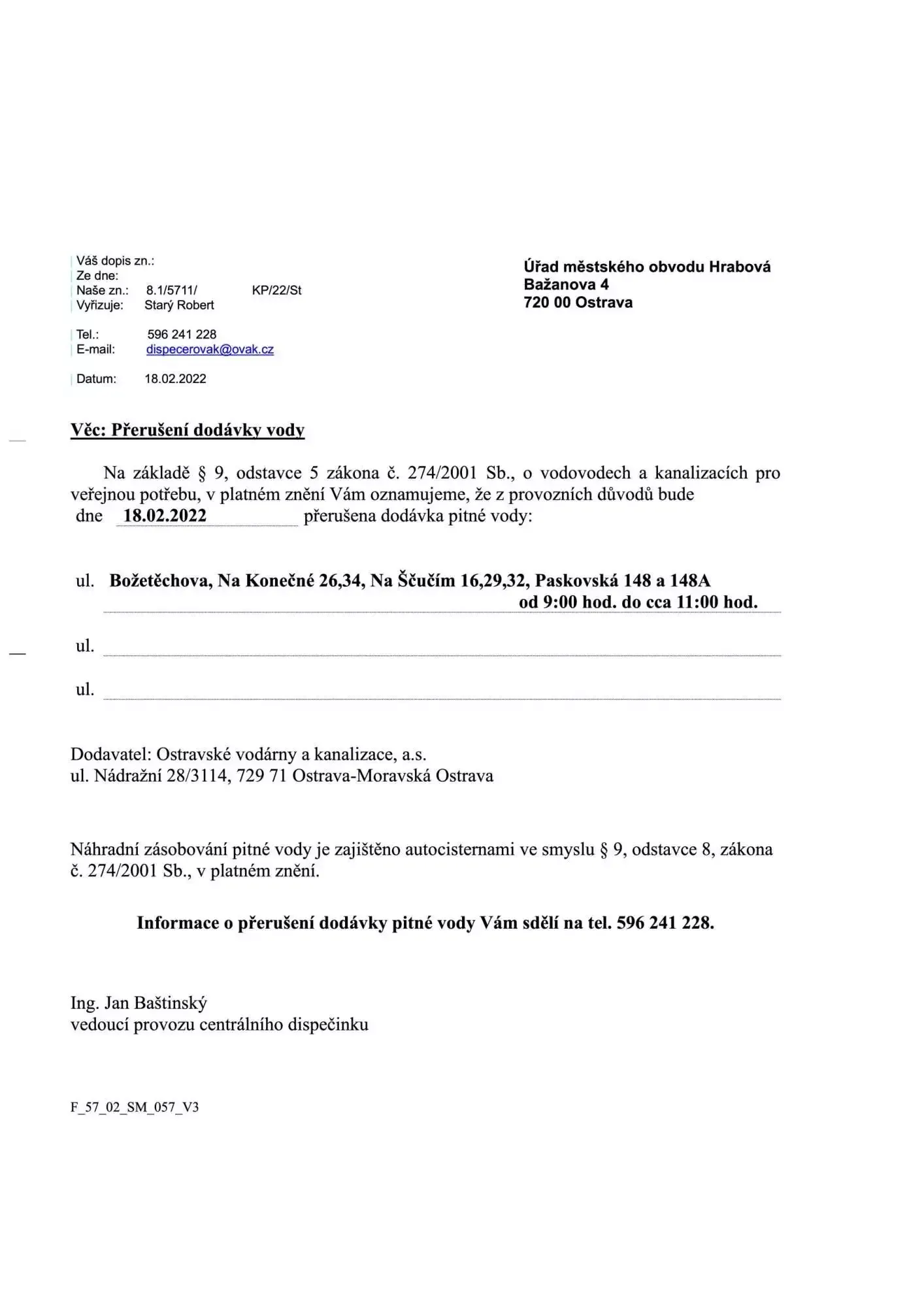 Dnes 18.2. 2022 nepoteÄŤe od 9:00 hod. do 11:00 hod. na ulicĂch BoĹľetÄ›chova, Na KoneÄŤnĂ© (26, 34), Na Ĺ ÄŤuÄŤĂm (16, 29, 32), Paskovská 148 a 148A pitná voda.