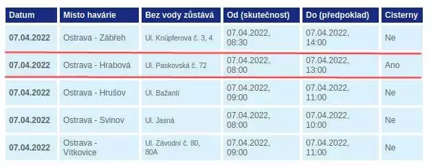 Dnes 7.4. 2022 nepoteče od 8:00 hod. do 13:00 hod. na ulici Paskovská č. 72 pitná voda.