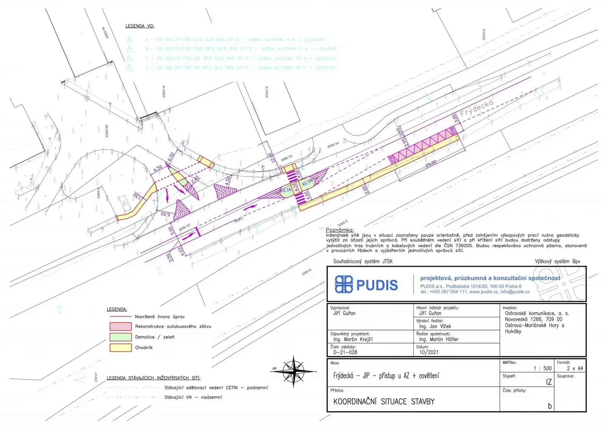 Investiční záměr „Frýdecká – JIP – přístup u autobusové zastávky + osvětlení“ byl zadán na základě pokynu pana primátora (podnět občana). Město mělo poskytnout finance v letošním roce. Chodníky a nástupiště by měly být zřízeny ve stávající zeleni, ostrůvky v živičných komunikacích.