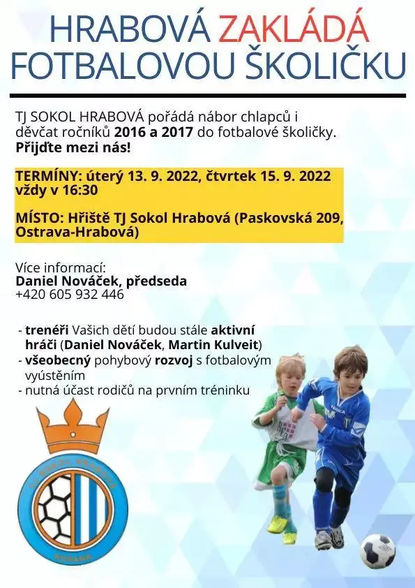 FOTBALOVÁ ŠKOLIČKA | Od září otvíráme nově fotbalovou školičku pro nejmenší, jmenovitě ročníky 2016 a 2017.