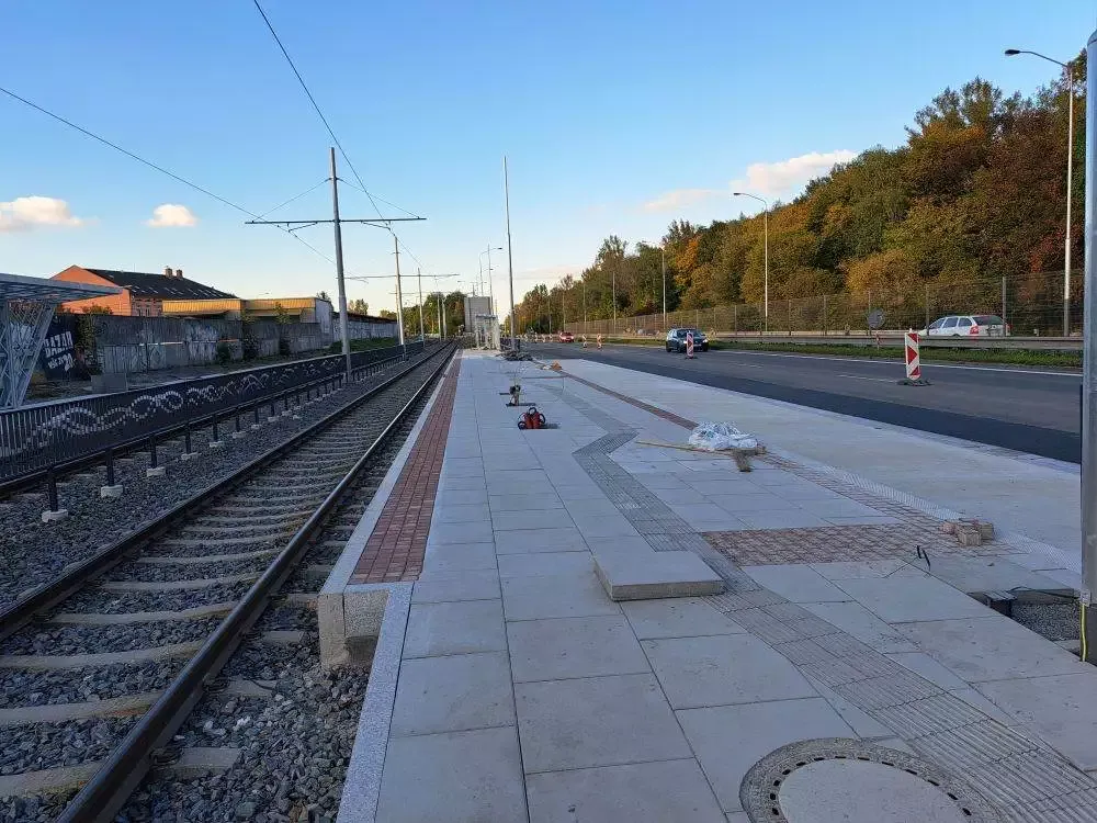 (Autor: Martin [msstavby.cz] | 17.10.2022) Aktuální fotografie rekonstrukce MHD zastávky Dřevoprodej v Ostravě-Hrabůvce. Prostor získává vkusnější velkoformátovou dlažbu. Místy jsou již umístěny nosné konstrukce přístřešků. Fotografie zaslal čtenář. Děkujeme!