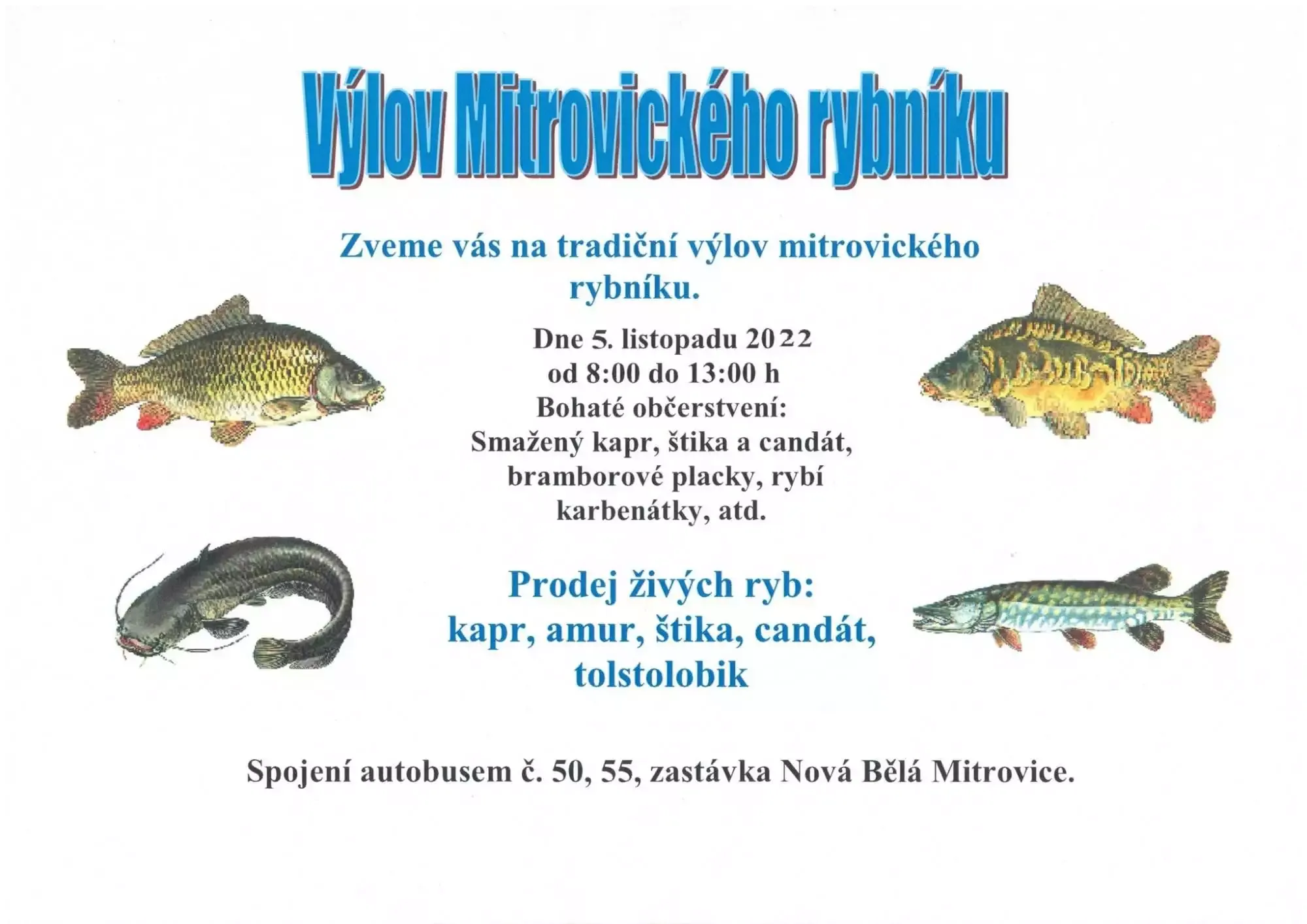 OpÄ›t znovu po roce mitrovickĂ˝ kapr chce s Vámi slavit Vánoce. Od 8h na hrázi budeme prodávat o sto šest, kapra za skvÄ›lou cenu 106,- PĹ™ijÄŹte kuknout, tradici zaĹľĂt, s přáteli pobavit a dÄ›cka zašpinit. K tomu smaĹľená rybĂ dobrĹŻtka, toĹľ úžasná to bude sobĹŻtka. A kdy Ĺľe se těšit na tu parádu? UĹľ 5. listopadu!