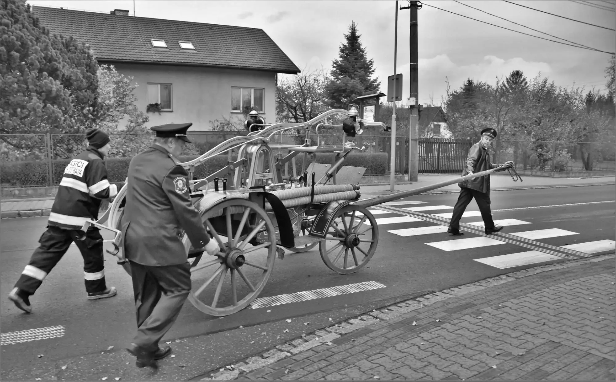 Městský chodec zapátral v paměti a poté v uložených fotografiích a vybral tentokrát jednu z oslav hasičů v Ostravě-Hrabové. Osobně si myslím, že kdyby zvolání: „Kůň! Kůň! Království za koně!“, nevzniklo už v době anglického krále Jindřicha III., jistě by se zrodilo právě v Hrabové při oslavách výročí vzniku místního hasičského sboru.
