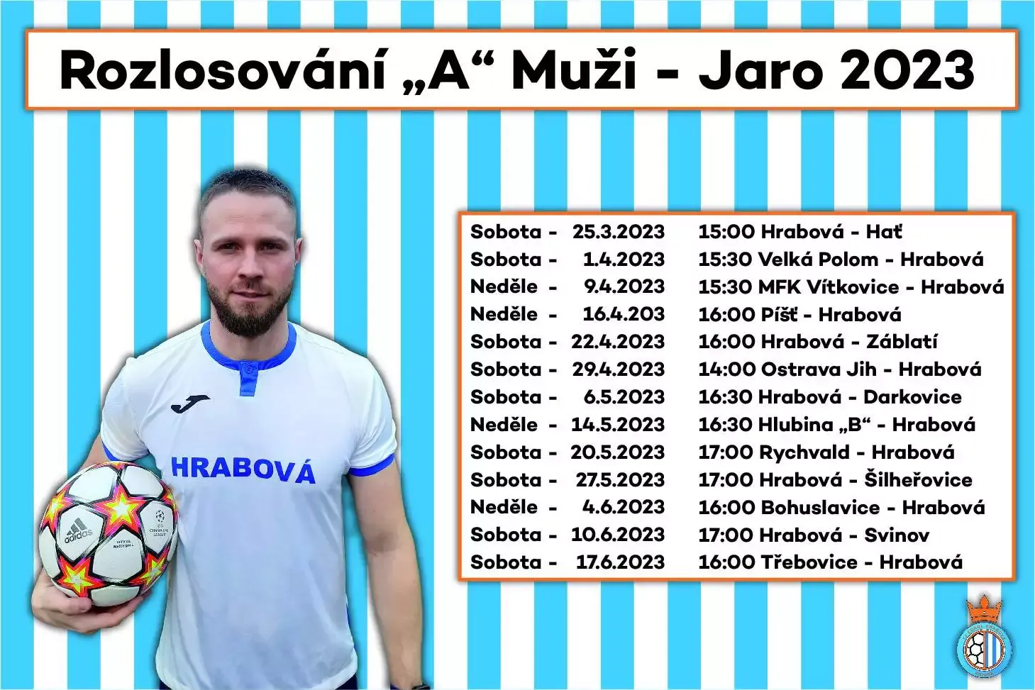 ROZLOSOVÁNÍ | Rozpis zápasů jarní části soutěže. Další zápas odehrajeme v neděli 9.4. 2023 v 15:30 hod. na hřišti MFK Vítkovice.