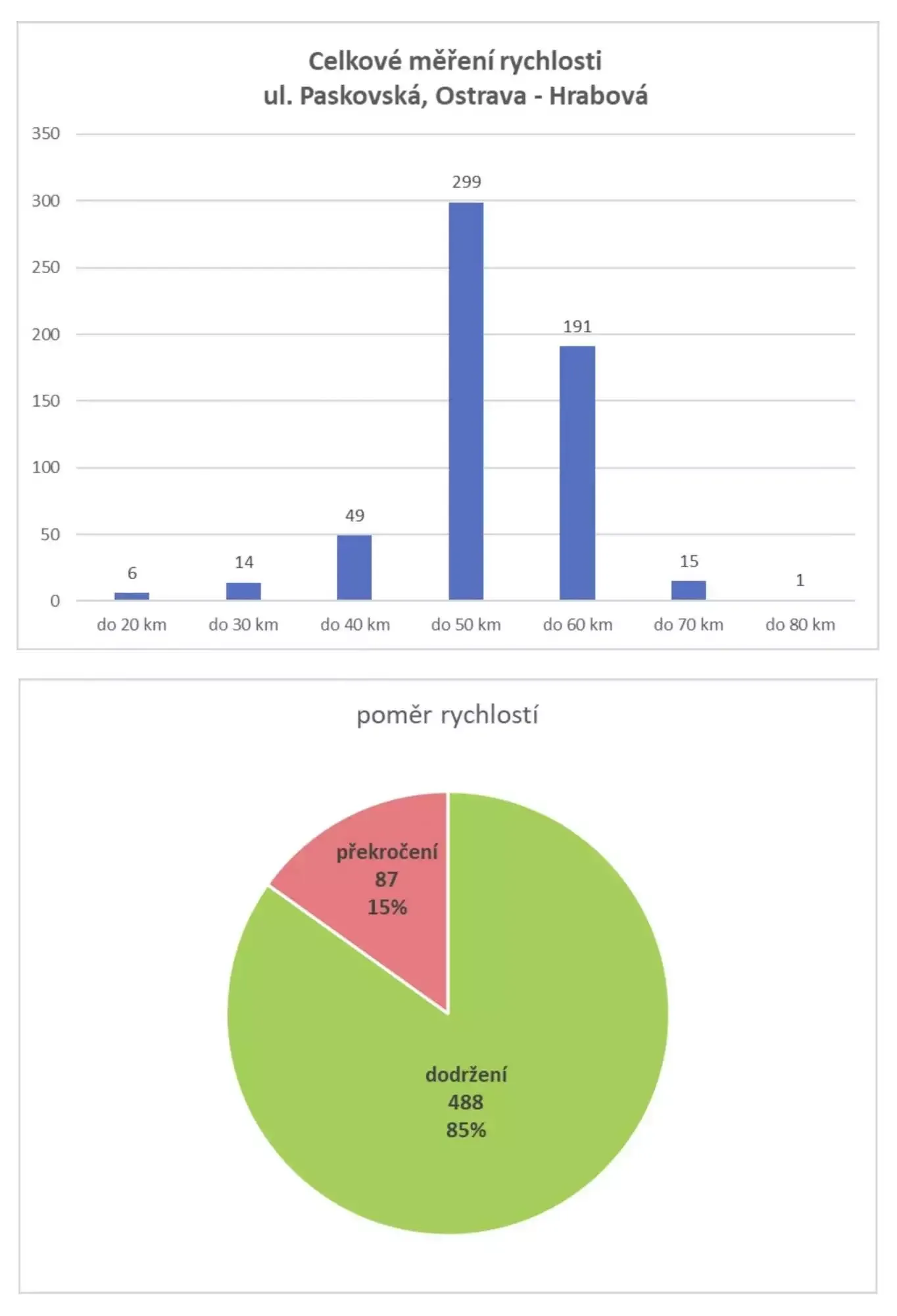 Na ulici Paskovská v Ostravě Hrabové bylo změřeno 575 vozidel, maximální rychlost jízdy nedodrželo 15% projíždějících řidičů (87), průměrná rychlost činila 46,6 km/h, a maximální naměřená rychlost činila 79 km/h (5.5. 2023 v 15:17 hodin). Na žádost vedení MOb Ostrava-Hrabová toto měření u Městské policie Ostrava zajistil pan Martin Gurbovič a zprávu vypracoval pan Milan Přikryl, děkujeme!