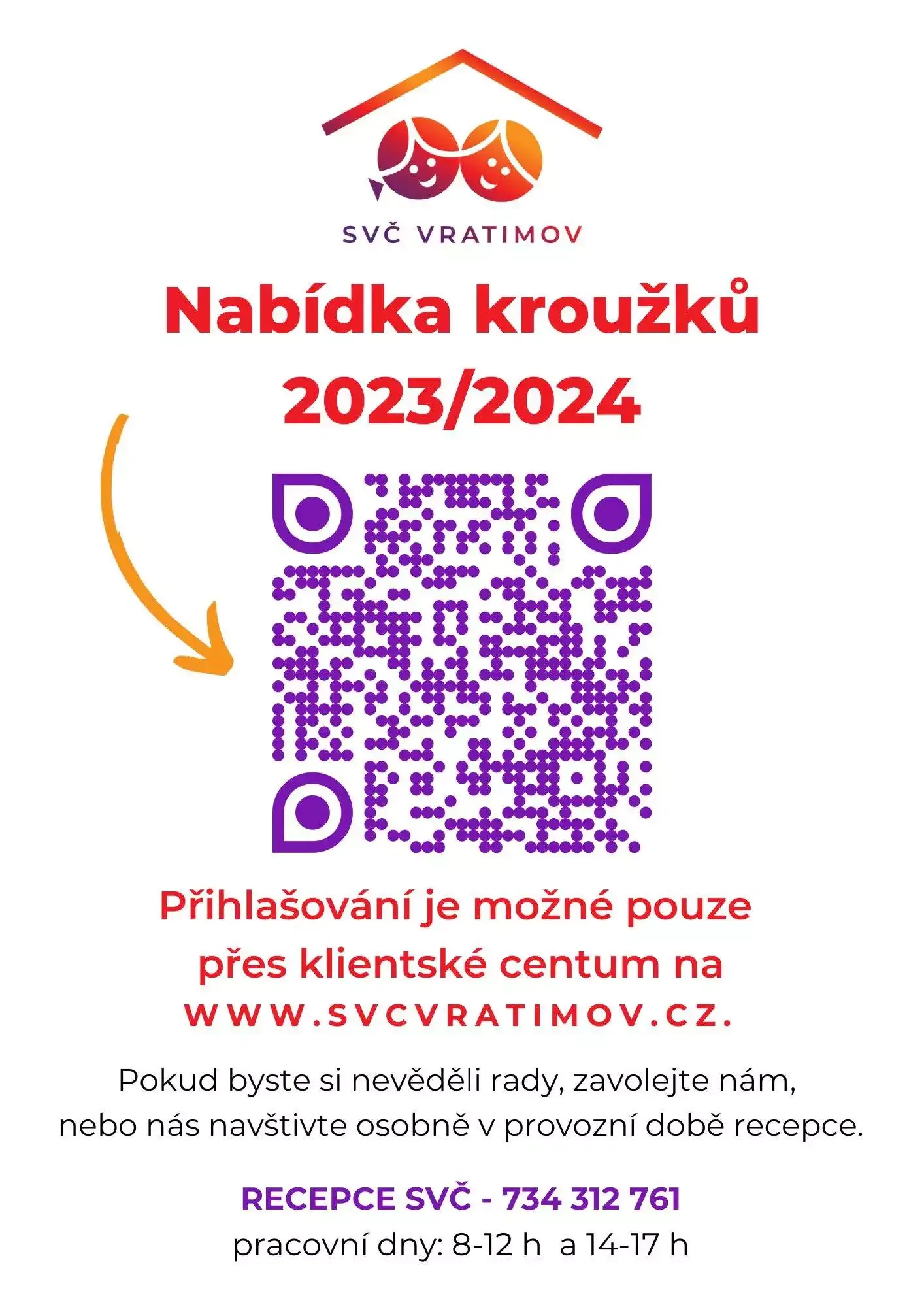3D tiskovna a kouzlo gravírování, Angličtina s Cookiem Paskov, Angličtina s Cookiem pokračovací, Angličtina s Cookiem začátečníci s Adélkou, Angličtina s Cookiem začátečníci s Lenkou, Baby dance, Badatel I., Badatel II., Badminton I. Řepiště začátečníci, Badminton II., Badminton II. Řepiště pokročilí, Badminton pro začátečníky, Badminton Václavovice, Bailarinas I., Bailarinas II., Baráčníci, Crafťáci pokročilé, Crafťáci začátečníci, Cvičení na velkých míčích I., Cvičení na velkých míčích II., DěZMV, Divadélko za školou, Dobroty, Dračí doupě, Dračí doupě II., Dramaťák Hrabová, Dramaťák Vratimov, Dramaťák Žabeň, Duplohrátky, Grafický design, GymAerobic, Gymnastika I. začátečníci, Gymnastika II. pokročilí, Gymnastika III. dvouhodinovka, Gymnastika pro nejmenší, Hejbni kostrou! I., Hejbni kostrou! II., Hra na kytaru, Hýbánky – Horní Datyně, Hýbanky Vratimov – předškoláci, Ještěrky Řepiště, Ještěrky Vratimov, Ještěrky Žabeň, Jóga pro dospělé, Jógohrátky, Keramika Hrabová, Keramika Paskov, Keramika předškoláci Václavovice, Keramika školáci Václavovice, Klub rodičů s dětmi, Klubíčko – klub rodičů, Kreativ klub, Kroužek šití, Kutil, Kybernetika, Legohrátky s WeDo, Máme rádi zvířátka, Mažoretky – rodičovský tým, Míče, míčky, sportovky Žabeň, Nebeské špičky, Nerf Game, Nerf Game I. Žabeň, Nerf game Řepiště, Nordic walking pro 55+, Ozobot maloš, Ozobot velkoš, Pohyb nás baví, Programování v C++, Quilling, Rej princezen, Robotická dobrodružství s LEGO, Rybochňapky, Sportmaniak, Step4U I., Step4U II., Tvorba webových stránek, Tvořílek, Tvůrčí dílna – keramika, Videodílna a kreativní úprava fotografii, Virtuální světy: cesta do 3D dimenze a Dron Masters Club, Výtvarka a tvoření Hrabová, Výtvarka a tvoření I. Paskov, Výtvarka a tvoření I. Václavovice, Výtvarka a tvoření I. Žabeň, Výtvarka a tvoření II. Paskov, Výtvarka a tvoření II. Václavovice, Výtvarka a tvoření II. Žabeň, Výtvarné tvoření a hry, Zdravé cvičení, Zdravé pískání II. školní děti, Zkus pokus