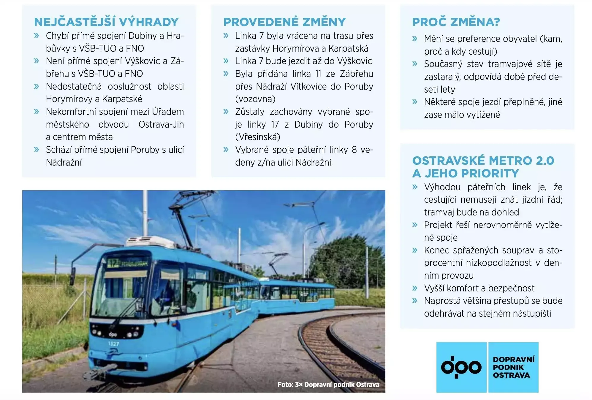 Nový návrh změn linkového vedení doprovází komunikační kampaň s názvem Ostravské metro 2.0. Všechny důležité informace, včetně upraveného plánu sítě linek a aktualizovaného elektronického vyhledávače spojení, jsou dostupné na webových stránkách: dpo.cz/ostravskemetro. Ve vyhledávači si každý zájemce může otestovat, zda a jak se změní jeho cestování městskou hromadnou dopravou po zavedení změn.