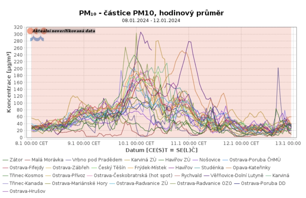 Že se jedná o špatnou imisní situaci v celém Moravskoslezském kraji je vidět na grafech ČHMÚ z portálu chmi.cz.