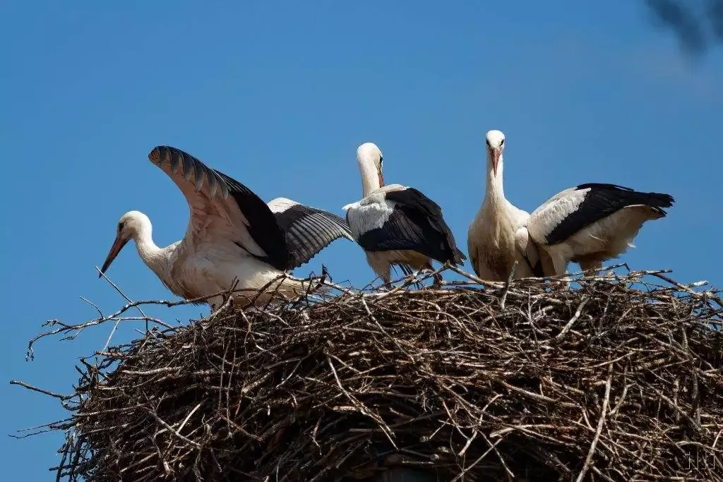 Mezi podřimováním, krmením a pravidelným vyprazdňováním se zajímají o své hnízdo, které svými zobáky přerovnávají a přepracovávají. Rozdíl mezi mladými čápy a jejich rodiči se zmenšuje každým dnem. Už brzy je budou rodiče učit hledat si potravu.