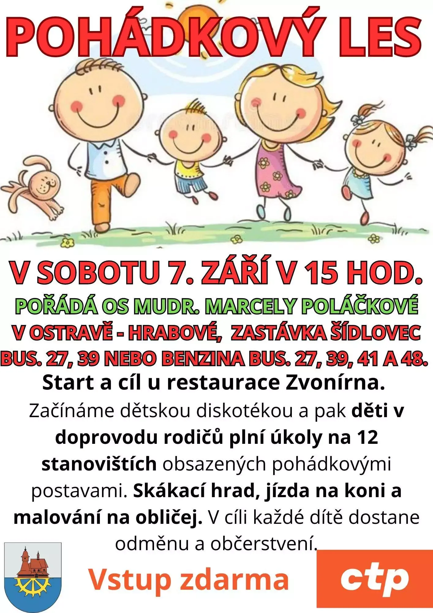 OS MUDr. Marcely Poláčkové pořádá 7. září od 15 hodin tradiční akci pro rodiny s dětmi – Pohádkový les. Děti čeká jako každý rok diskotéka a plnění úkolů na 12 stanovištích obsazených pohádkovými postavami. Start a cíl je u restaurace Zvonírna, trasa vede do areálu bývalé MŠ V. Huga. Děti čeká spousta zábavy i poučení, skákací hrad, malování na obličej, jízda na koních a na konci odměna v podobě dárku a občerstvení.