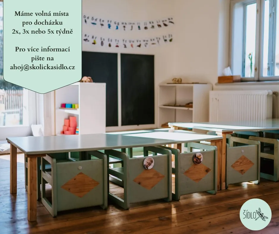 Hledáte pro své dítko ve věku 1,5-3 roky láskyplnou „školičku“? V naší dětské skupince máme ještě pár volných míst. Přihlásit se můžete přes naše webové stránky https://skolickasidlo.cz/, nebo nám napsat e-mail s dotazem.
