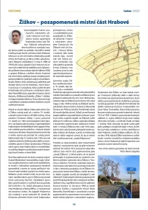 (Martin Slepička, Hrabovské listy 2022/01) Severozápadní hranici současného městského obvodu Hrabová tvoří odedávna trochu opomíjená hrabovská místní část Žižkov. Faktická odloučenost této bouřlivě se rozvíjející osady, kterou ještě na počátku minulého století tvořilo jen pár domů, od hlavní části Hrabové, táhnoucí se od vrcholného středověku podél silnice do Paskova, je dána uměle vybudovanými lidskými překážkami. V letech 1988 až 1990 totiž celou západní část Hrabové od severu k jihu definitivně oddělila nová čtyřproudá rychlostní komunikace (dnešní dálnice D56) a spojení Žižkova s dalšími částmi Hrabové tak od té doby zajišťuje pouze nevábný podjezd pod dálnicí s jediným úzkým chodníkem. Osadu Žižkov dnes představují přibližně pět desítek domů, farma Duběnka, různé firemní provozy či autosalony ležící podél dlouhé Krmelínské ulice od hranic s městským obvodem Nová Bělá až po populární čerpací stanici Benzina. Oblíbenost lokality „Žižkov“ s blízkými hypermarkety Makro a Tesco demonstruje i zamýšlená výstavba dalších desítek nových rodinných domů.