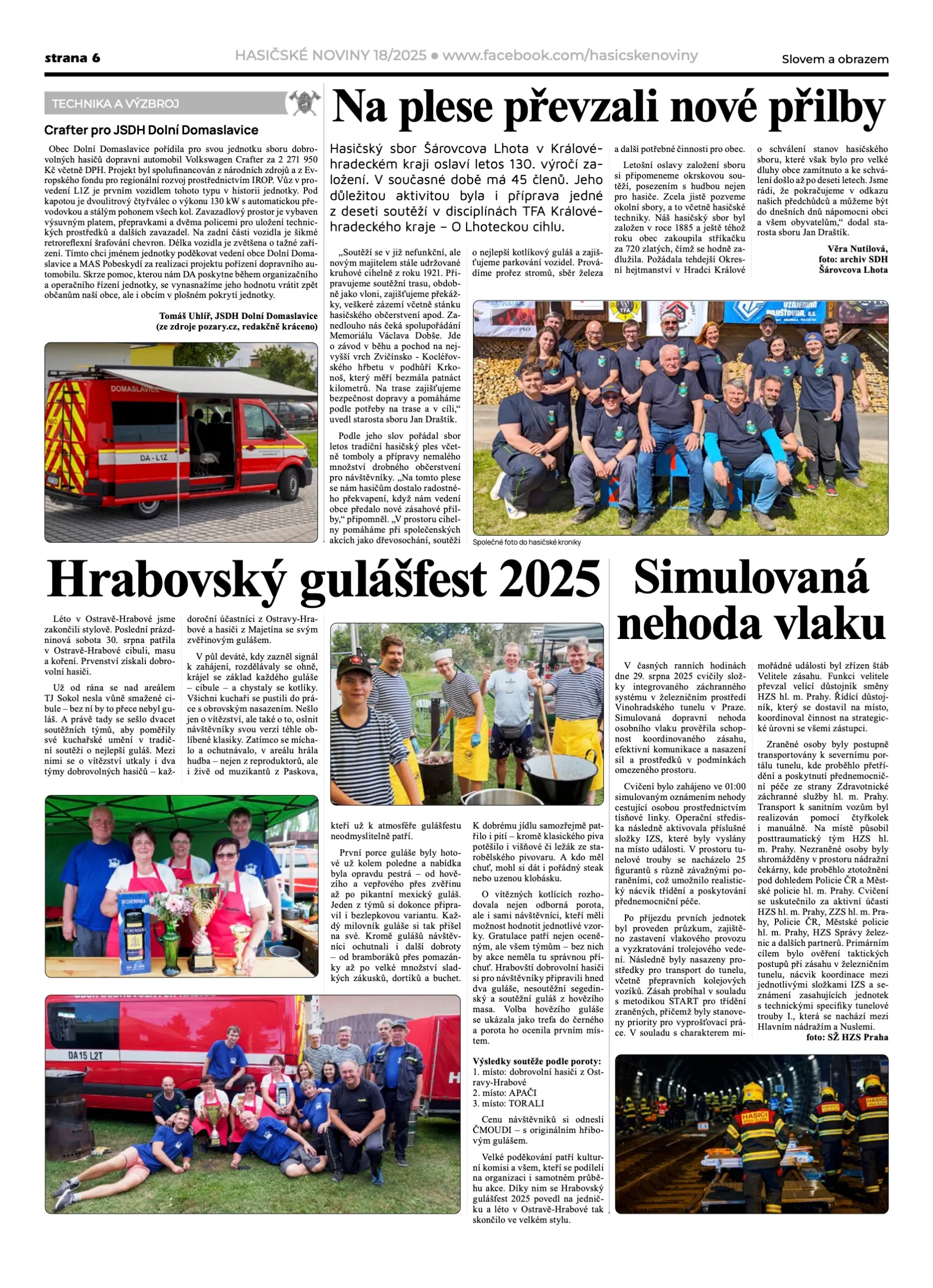 O našem tradičním Hrabovském gulášfestu se píše i v celostátním vydání Hasičských novin. V článku redakce ocenila skvělou atmosféru, nasazení týmů dobrovolných hasičů a pestrost soutěžních gulášů, které k nám každoročně přilákají stovky návštěvníků.