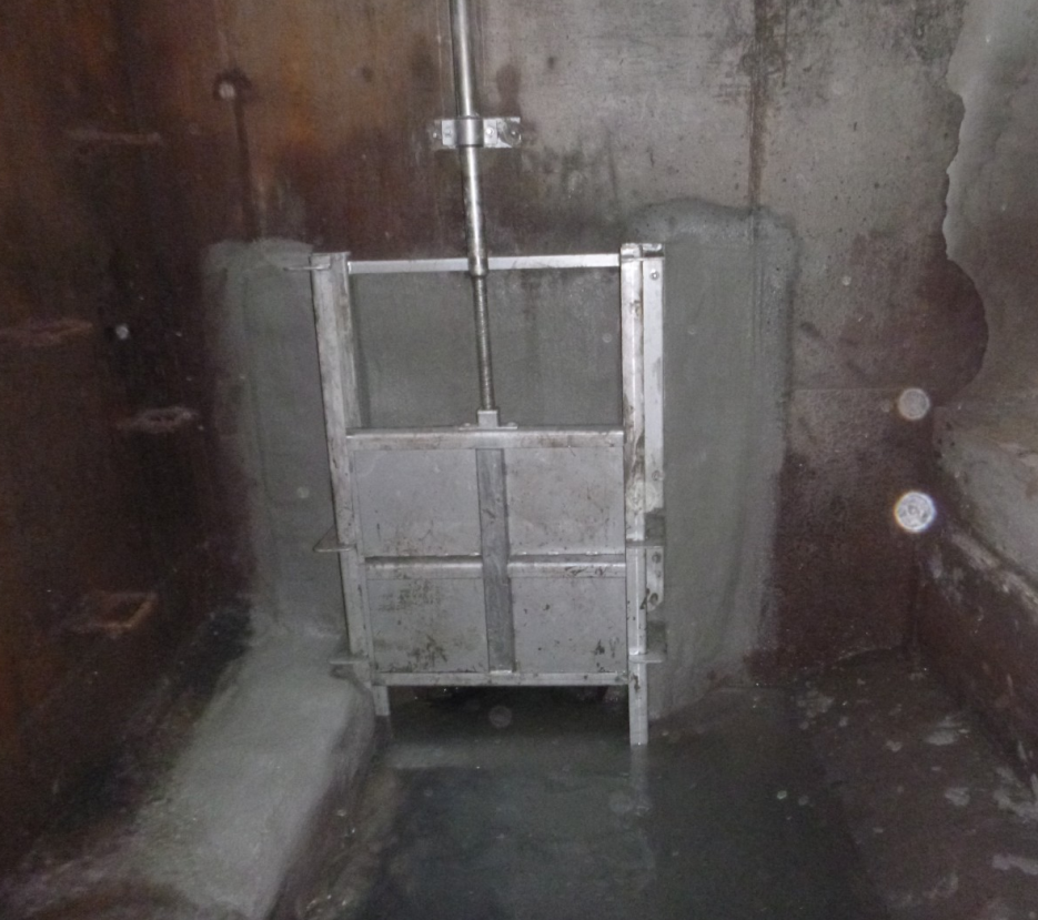 - Stavítko na odtoku z OK Mostní před opatřením (otevřené, nefunkční)