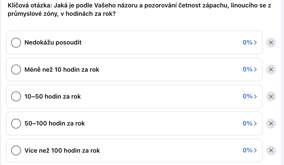 Klíčová otázka: Jaká je podle Vašeho názoru a pozorování četnost zápachu, linoucího se z průmyslové zóny, v hodinách za rok?